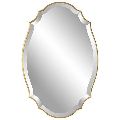 Salt & LightA shaped beveled mirror sits atop a rounded edged frame, finished in a lightly antiqued, metallic gold leaf. The bevel is 1" wide. This frame may b...