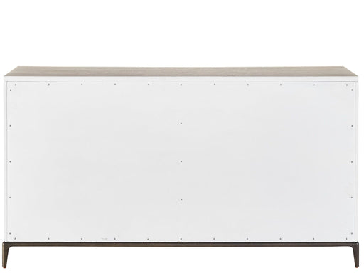 Universal FurnitureThe Riven Dresser, with its three elongated drawers, is a masterpiece of textural harmony, brought to life by chic polished nickel ring pulls. Its ...