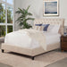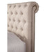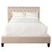 Capturing the character of classic Chesterfield design, the Cameron bed is dressed to impress. It features a roll-back design accentuated by deep button tufting and hand-applied nailhead trim. Upholstered in a high-performance, linen-inspired fabric, Cameron has an upholstered footboard and siderails complemented by tapered wood feet.