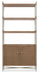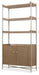 A stylistically versatile piece blending natural textures with a light-and-airy modern aesthetic, the Sonnet Bookcase is ideal for storage and display or as a room divider. Crafted of Quartered and Cathedral-Cut White Oak Veneers in a light earthen-toned finish, it has complementary woven cane door fronts. Chic satin-finished metal knobs accentuate the metal frame and the slender, tapered legs and X-stretcher. The two fixed wood shelves have gallery backs. The two wood-framed doors have cane fronts, soft-close hinges and one adjustable wood shelf behind the doors.