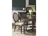 The Cocoa Oval Side Chair offers a graceful nod to Louis XVI styling with an elegant oval-framed back and upholstered insert. Embossed Cocoa back finish provides textural interest while Smoked Gold ferrules add sophisticated metallic accents to dining spaces.