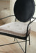 Welcome your guests with this iconic, industrial luxe Ciao Bella Metal Arm Chair with a romantic French attitude. The metal frame is finished in an Aged Bronze, and the removeable, reversible Tuscan White seat cushion is button tufted on one side with French primitive tufting on the other for comfort.
