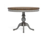 Capture the relaxed look of an inviting cottage with the Plymouth round counter-height dining table. Taller than your standard dining table, this piece lends a more casual feel to spaces where you gather to share meals or interact. Featuring a distinctive carved pedestal base, this timeless design easily fits in smaller dining areas or game rooms and comfortably seats four. A weathered graywash finish is enhanced by the medium brown table top, evoking a vintage charm that adds warmth and character.