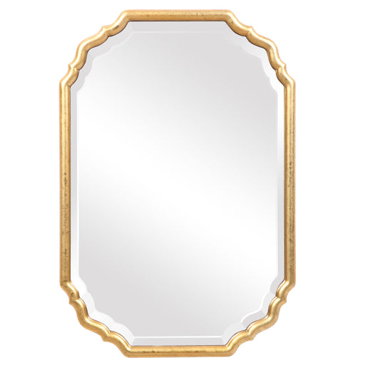 Salt & LightThis vanity mirror features elegant curved corners and finished in a lightly antiqued, metallic gold leaf. The mirror has a generous 1.25" bevel. M...