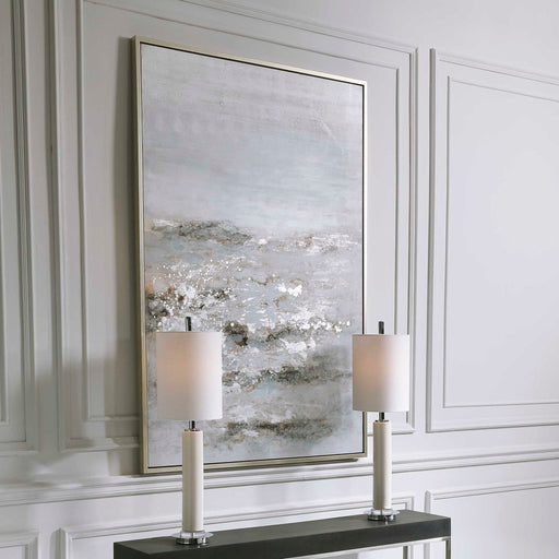 UttermostHand Painted On Canvas, This Abstract Artwork Transcends Multiple Design Styles. A Versatile Color Palette Of Light Gray, Cream, And Icy Blue Is Co...