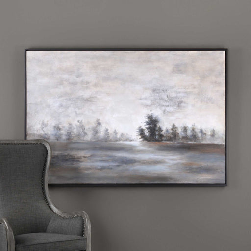 UttermostReminiscent Of A Snowy Lake, This Hand Painted Landscape On Canvas Presents Cool Tones In A Subdued Palette. Icy Blue, Light Gray, And Charcoal Sha...