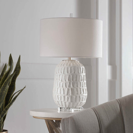 UttermostA Modern Take On Old World Style, This Table Lamp Features A Textured, Aged White Ceramic Base With An Organic Grid Design Displayed On A Thick Cry...