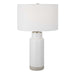 Inspired By Farmhouse Style Pottery, This Table Lamp Is Handcrafted From Ceramic Finished In A Textured White Glaze With A Natural Bottom, Paired With Plated Brushed Nickel Accents. A White Drum Shade Complements This Piece.