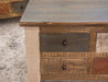 End Table. Discover the ideal rustic accent for your space within our Antique Multicolor collection. Meticulously crafted from solid pine wood and adorned with a distressed multicolor finish, each piece in this collection exudes uniqueness in every aspect.