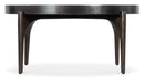 A chic modern take on a classic silhouette, the Commerce & Market Round Cocktail Table is crafted of Acacia Solids in a dark natural wood finish revealing color and grain variances for organic beauty. There’s a tray-top design with subtly curved legs. Tray top is not removable.