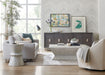 With a chic chunky shape and four paned stone-like panels on the top, the Korena Cocktail Table has a casual organic look with a serene gray finish over Elm Veneers and resin.