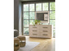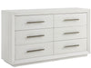 The Shoreline Dresser offers six spacious drawers with sleek bar pulls, making it both stylish and practical for everyday use. This dresser includes felt-lined jewelry trays in the top drawers and provides exceptional storage capacity with its fresh Shoreline finish.