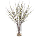Quince Blossoms - Silk Centerpiece, Plant In A Clear Glass Vase - Dark Brown