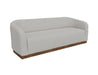 Wooden Frame & Base, Sofa. The Suomi Collection, distinguished by its flowing form, embodies the Zen-inspired Japandi style. This sofa minimalist design is harmoniously complemented by its wooden base crafted from pine wood, with its wraparound back seamlessly merging into rounded arms, creating a cradle for an exceptionally thick and comfortable cushioned seat