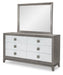 Angular modern shapes, organic textures and mixed materials combine with a gray, cream, and metallic color palette to create a crisp modern look in the Terra Luna whole home furniture collection. The deeply wire-brushed Nightfall finish gives a tactile, dimensional texture, contrasting with the White Cloud case fronts and upholstery and metallic-finished table and chair bases. Over scaled, jewelry-like Polished Nickel hardware adds a glam touch. The clean silhouettes paired with natural color tones and organic textures give a minimalist yet inviting appeal.