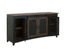 2 Sliding Doors, 2 Mesh Doors TV-Stand. Introducing our Pueblo Black collection, crafted from solid pine wood. This rustic collection is the perfect addition to bring your dream space to life. It features a hand-distressed finish in black and brown on the tops.