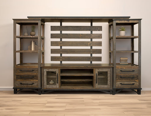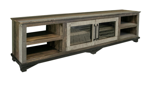 IFD Group2 Door 93" TV Stand. The Loft Brown Collection is constructed using pine wood that has been hand-stained and distressed, complemented by hand-forge...