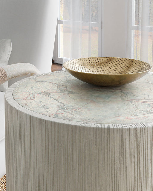 Hooker FurnishingsWith a convenient C-shape and compact 12 x 12 footprint, the Marin Drink Table combines Pewter Metal on the base with a Tumbled White Onyx top for ...