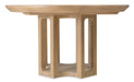 The Banyon Bay Round Dining Table combines modern lines with natural materials for a casual yet elegant look. This white oak table features one 18-inch leaf that extends the table to 72 inches long, making it perfect for both intimate and larger dining gatherings. The open pedestal base provides sturdy support, while the Desert Oak finish adds warmth with its wire-brushed and cerused details. The Banyon Bay collection’s youthful and eclectic design makes this table a standout piece in any home.