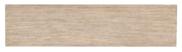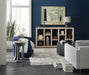 In a dynamic design creating an asymmetric assortment of cubbies, the Commerce & Market Console has five fixed shelves creating 10 storage spaces. Crafted of Mindi Solids, it has a light natural wood finish.