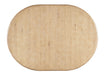 With a tropical retreat-inspired vibe accented by organic details, the Retreat Pole Rattan Round Dining Table has a bundled-pole-designed motif with rope accents. Crafted of Oak Veneers, it features the sand-colored finish, transparent by design to reveal unique grain patterns of the veneer. The tabletop has a Solid Wood edge. When the 20-inch leaf is in place, the table extends to 74 inches and accommodates up to 8 coordinating chairs. Without the leaf, it accommodates up to 6 coordinating chairs.