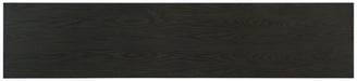 Crafted of Elm and Poplar Veneers with an antique bronze metal base, the Solstice Entertainment Center has a sophisticated primitive style. There’s one adjustable, ventilated wood shelf behind the center pair of doors and one adjustable ventilated wood shelf behind each of the outside doors and a ventilated back panel in all sections. Contrasting a medium wood finish with a dark gray top, the Solstice accommodates up to an 80-inch TV.