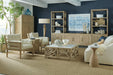 With a laid-back tropical vibe, the Surfrider Media Console has three rattan-front doors with soft-close hinges and is finished in Driftwood, a light natural finish with distressing. Crafted of Pecan Veneers and Rattan with a Solid Wood edge top, the console has one vented adjustable shelf behind the left pair of doors and one vented adjustable shelf behind the right door, a ventilated back panel and one 3-plug electrical outlet. Accommodates a 65-inch flat screen TV.