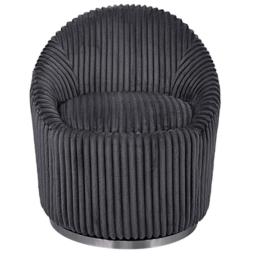 UttermostA Contemporary Accent With A Modern Edge, This Chair Is Upholstered In A Luxurious Fluted Gunmetal Chenille Fabric And Is Accented By A Stainless S...