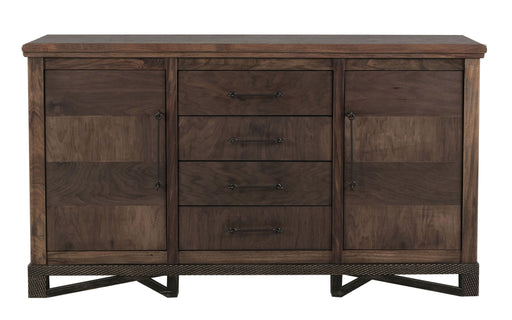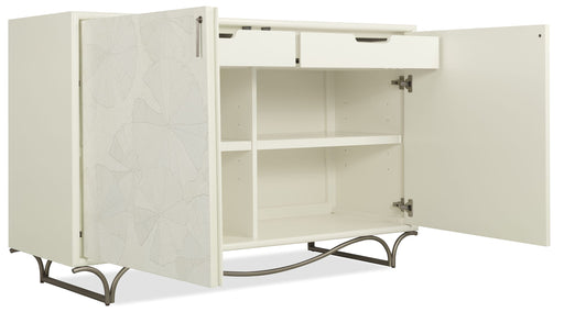 Hooker FurnishingsAdd modern artistry to your living space with the Eleana Two Door Chest, featuring a Light Caramel walnut veneer finish and sculptural Sunlit Bronz...