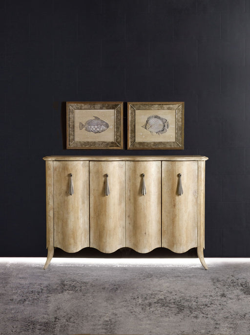Hooker FurnishingsCurvy and couture, the swanky Draped Credenza has a fashion flair with its tassel-like hardware, shaped front and apron and delicate cabriole legs....