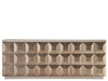 The Dolce Credenza is a bold statement piece that redefines modern luxury. Its striking geometric pattern, finished in a rich Antique Silver Leaf, creates a captivating visual impact. The three doors, concealing two adjustable shelves and a convenient power bar, offer both style and functionality. This unique piece is a perfect addition to any contemporary living space.