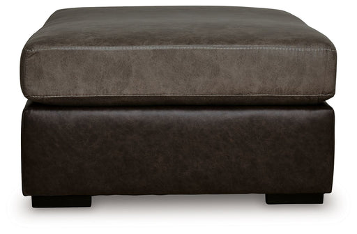 Signature Design by Ashley®Living room lounging gets a dose of approachable luxury. This sleek oversized accent ottoman is defined by supple faux leather in contrasting rich ...