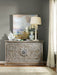 Featuring an intricately carved floral patterned front and an opulent, oversized center pull in an aged silver tone, the Mélange 2-door Accent Console is a stunning focal point in a soft driftwood-tone finish with whitewash paint. One adjustable wood shelf behind the pair of doors and a ventilated back panel.