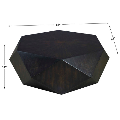 UttermostThis Unique Geometric Table Features A Low Profile, Perfect For Viewing The Sunburst Top In Mango Veneer With A Worn Black Finish With Natural Dist...