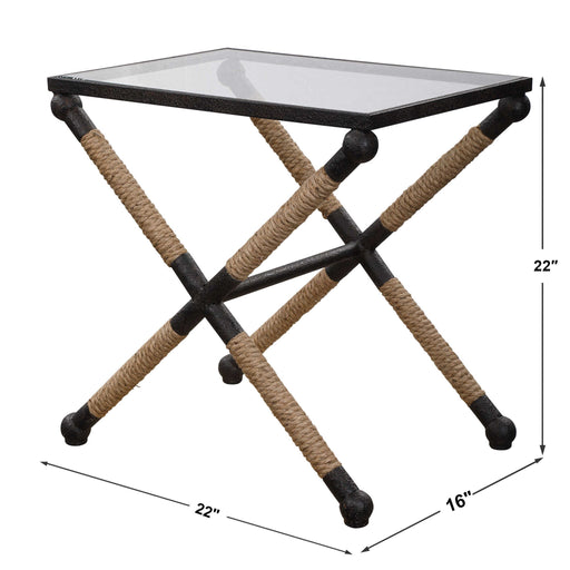 UttermostA Nod To Classic Coastal Style, This Accent Table Features A Rustic Iron Frame Wrapped In Natural Fiber Rope Accents Topped With Clear Tempered Gla...