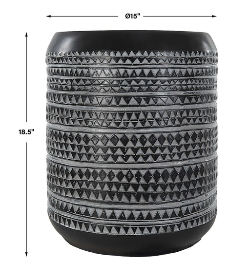 UttermostMake A Fun Tribal Statement With The Cutting Edge Accent Table, Formed From Cast Resin In A Chalk Black And Gray Pairing With Recessed Textures.Pro...
