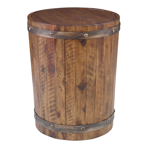UttermostCapturing The Essence Of An Authentic Wine Barrel, This Solid Distressed Acacia Wood Piece Is Finished In A Weathered Walnut Stain, Complete With I...