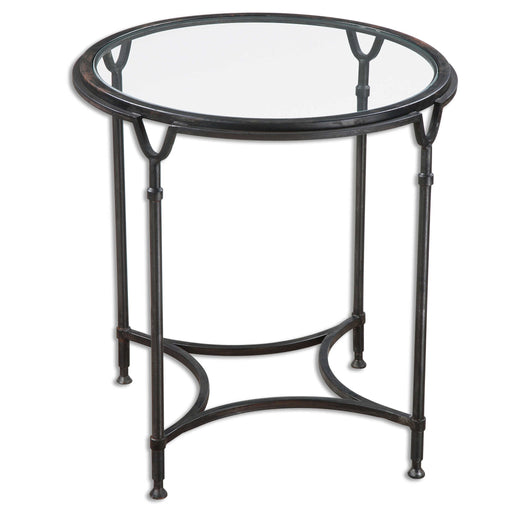 UttermostFeaturing Equestrian Inspired Lines, This Hand Forged Steel Side Table Is Finished In Aged Black, With A Clear Tempered Glass Top.Product FeaturesD...