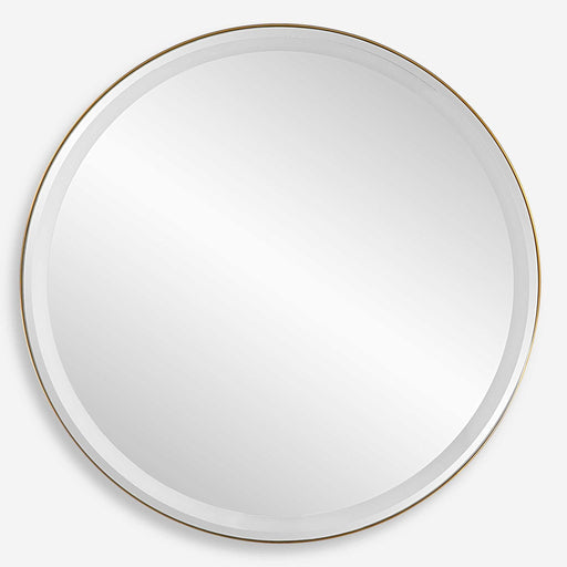UttermostThis Large Round Mirror Showcases A Strap Style Iron Frame Finished In A Sleek Matte Black With Soft Curved Ends That Encompass Antique Gold Column...
