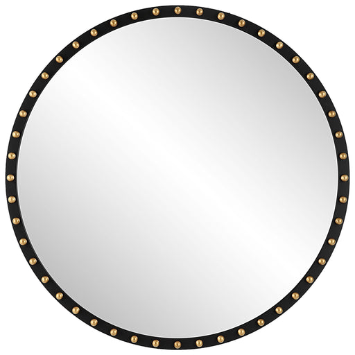 UttermostThis Oversized Round Mirror Is Made From Solid Beech Wood Finished In A Matte Black, Adorned With Lightly Distressed Gold Leaf Wood Ball Details.Pr...
