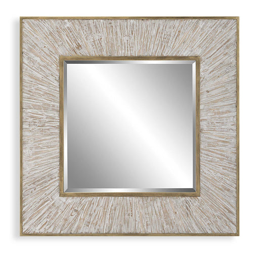 UttermostRustic With A Twist, This Square Mirror Is Constructed From Solid Wood In A Heavily Distressed Finish With Aged Whitewash. Iron Details Are Finishe...