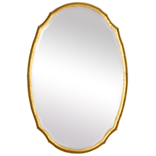 Salt & LightThis oval shaped frame is made of hammered metal and features a concave surface. It is finished in a lightly antiqued gold leaf. The mirror has a g...