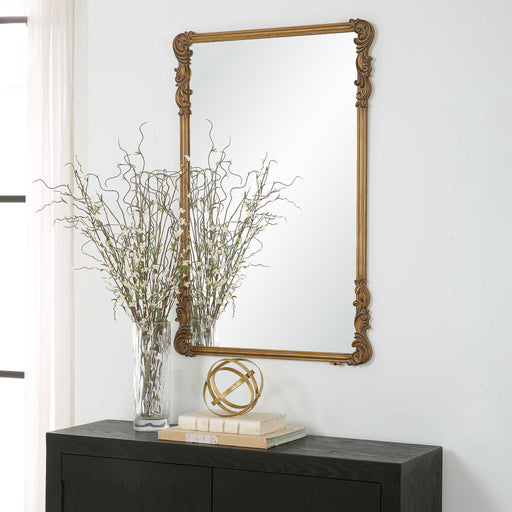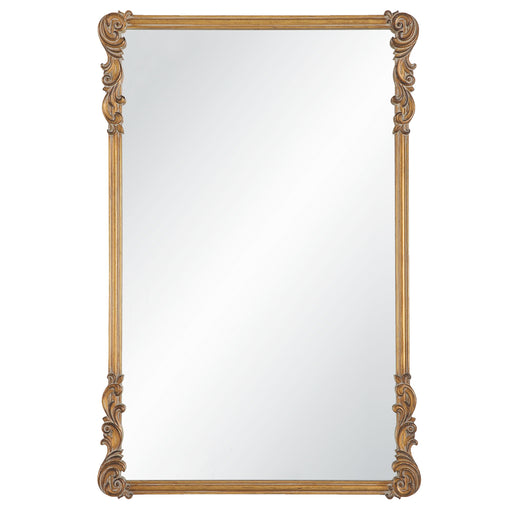 Salt & LightGraceful curves add elegance to this unique mirror. The frame features a rich gold finish with amber glaze. The mirror has a 1.25" bevel. May be hu...