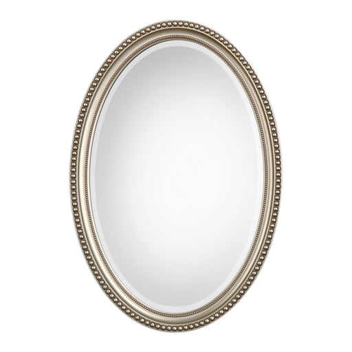 Salt & LightAdd a touch of elegance to your space with this beaded oval mirror. Finished in a metallic silver finish with a subtle brown antiquing. The mirror ...