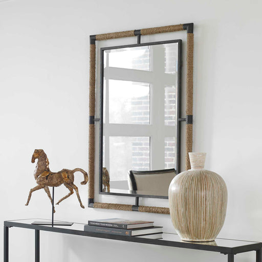 UttermostThis Forged Iron Mirror Frame Is Finished In A Textured Rust Black That Is Wrapped In Natural Rope Bringing A Coastal Feel To Any Room. The Mirror ...