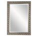 This Unique Vanity Mirror Features Repeated Ceramic Tiles With Convexed Centers Finished In An Antiqued Silver-champagne Plating, Encased In A Black Iron Inner And Outer Frame. Mirror Has A Generous 1 1/4" Bevel.