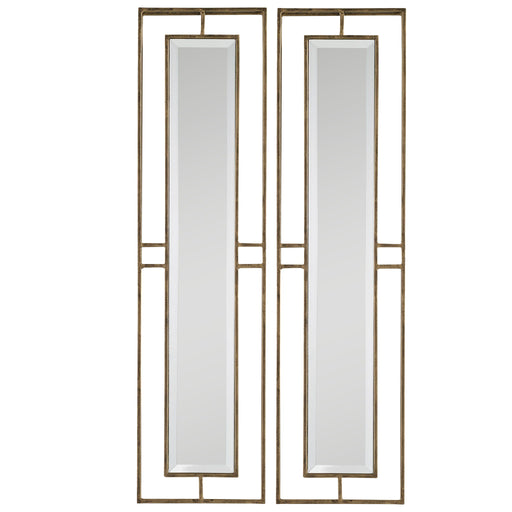 UttermostClean And Contemporary, Each Mirror Exhibit Linear Metal Frames With A Nearly Two Inch Open Depth. Each Frame Is Finished In A Heavily Antiqued Gol...