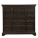 The strong, traditional style of this master chest catches the eye, but its the ample storage that really steals the spotlight. With fifteen smooth-gliding drawers in the center, it offers the perfect spaces for everything from socks to sweaters. On the top edge, clever metal tabs offer a convenient pull to access two more hidden drawers, each lined with felt and ideal for discreetly storing high-value items like wristwatches or jewelry. The bar-style pulls offer a subtle hint of metallic accenting, and the well-defined framing on the drawer fronts is reminiscent of museum-quality storage. On the base, bracket feet ensure stability, and simple shallow inset details on the sides complete the look. Tall and grand in scale, it's the ideal centerpiece for your bedroom furniture ensemble.