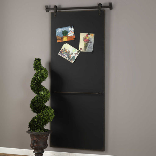 UttermostOrganize Your Calendar, Or Use As A Catch All For Artwork, Photos, And Family Happenings With This Farmhouse Barn Door Chalkboard. Five Clip Magnet...