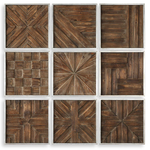 UttermostA Collage Of Unique 3-dimensional Pieced Patterns Of Rustic Distressed Fir Wood, Framed In Silver Leaf. Bryndle - Rustic Wooden Squares (Set of 9) ...
